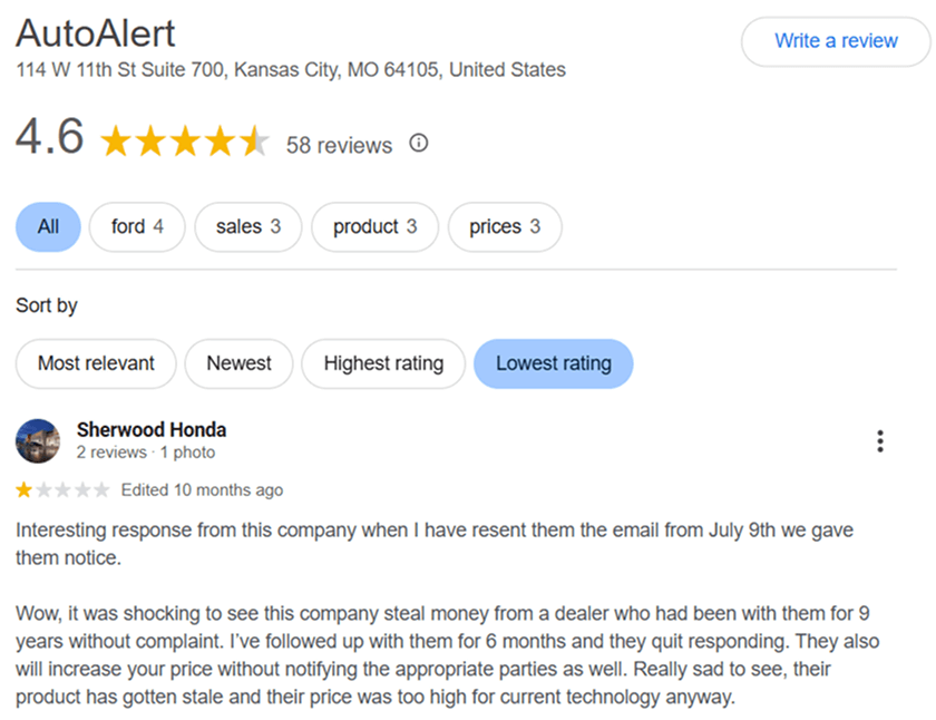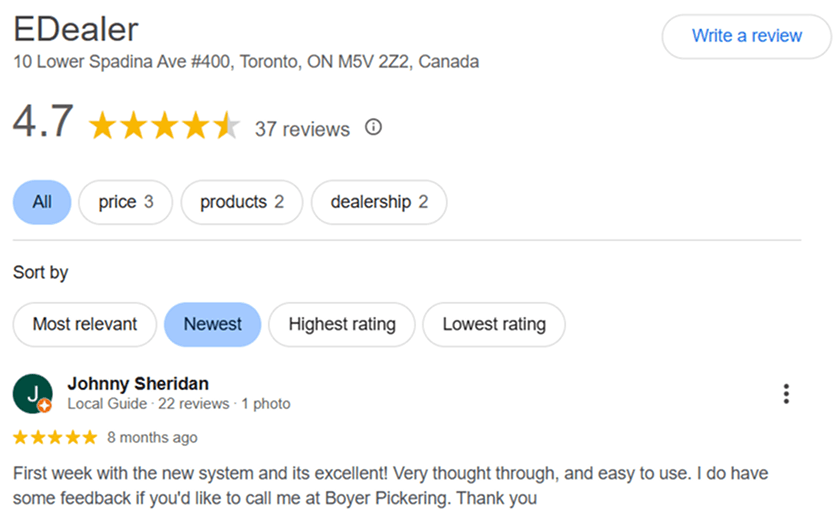 Here’s a screenshot of a genuine Google review for EDealer: