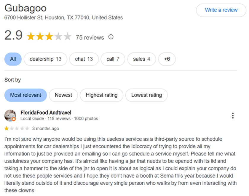Gubagoo is included for its conversational approach rather than static chat prompts. Dealers rely on its response times, photo sharing inside chat, and appointment scheduling. However, challenges show up in tuning. Poorly configured flows can frustrate shoppers, and some dealers feel pricing is high for single rooftops. Managers also note a learning curve to get useful reports.